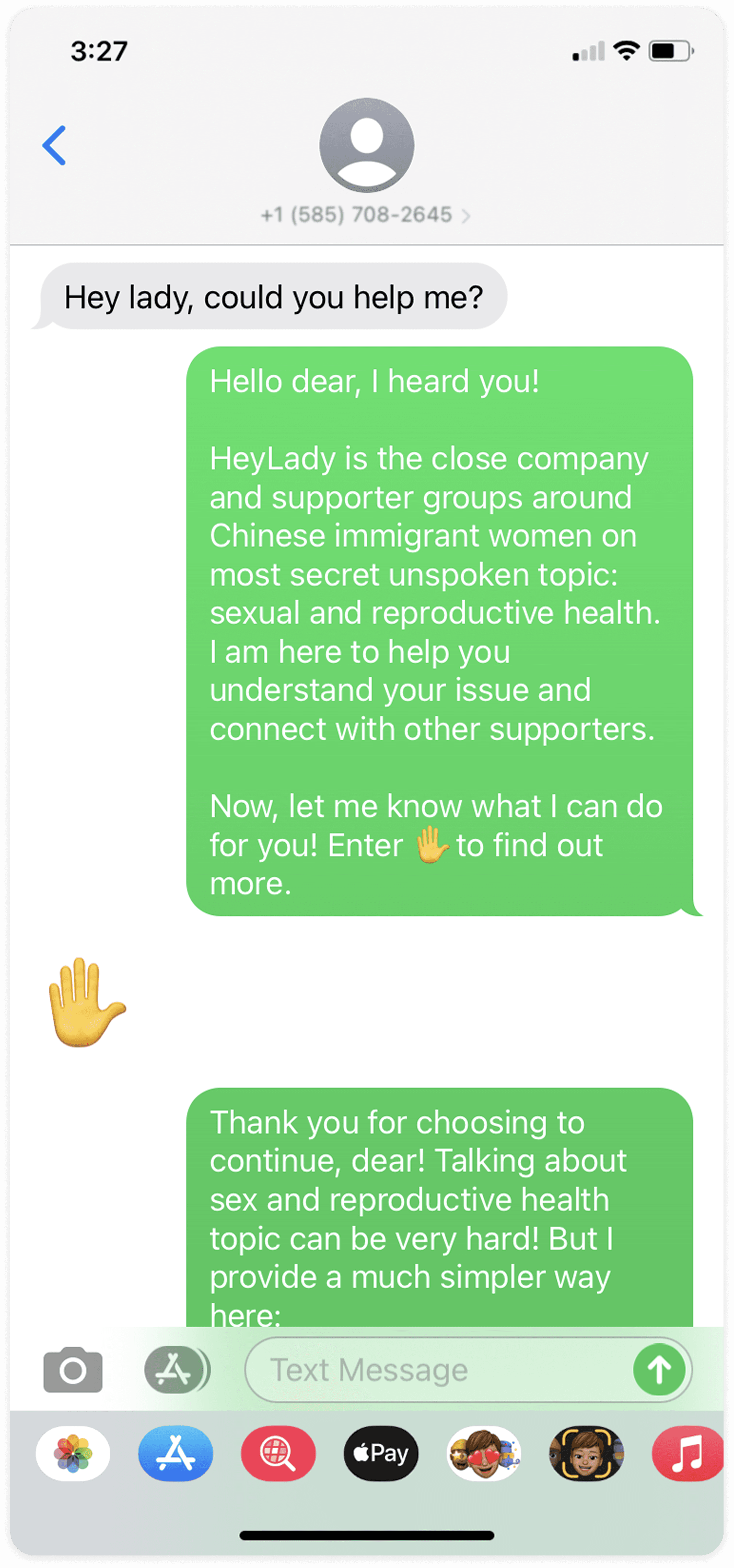 HeyLady eventually grew into a community with over 35 active members in New York City, Pittsburgh, and Jersey City, and 200 followers online. We hosted two workshops, one textline, and received and transferred 80+ support messages in our community. Though the project has come to a temporary pause in May 2021, according to participant feedback in early 2022, their willingness to discuss sexual and reproductive health topics in public settings and within intimate relationships had increased. Two of them have become actively involved in the field of sexual and reproductive health through participation in local NGOs and support groups.
