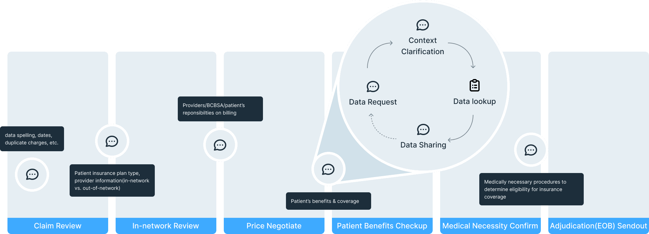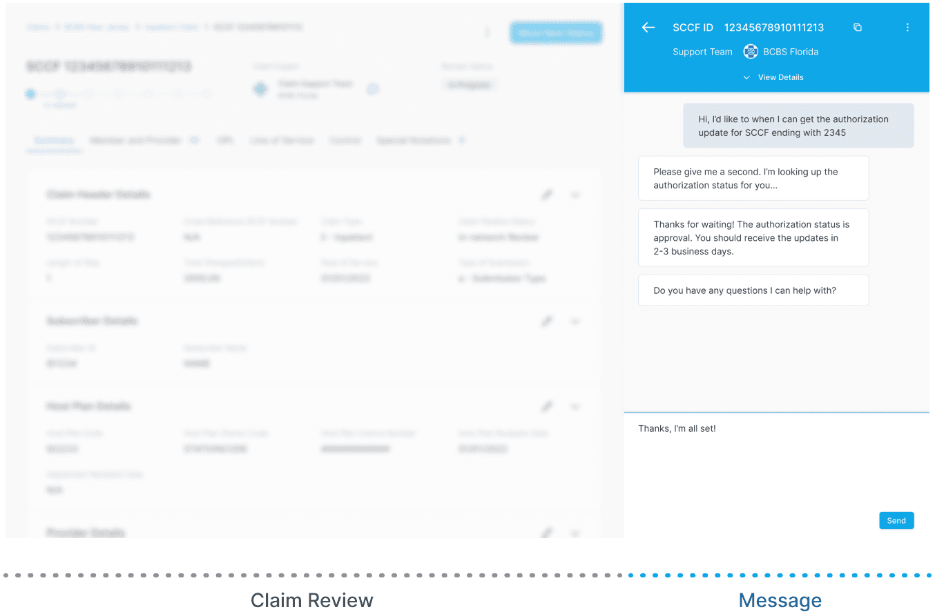The split layout enables quick lookups from multiple sources. The copy-paste shortcut ensures data transfer. UX writing guides users through the new feature and system state. Every detail was designed upon user behavioral patterns and to help users and BCBSA achieve their goals.