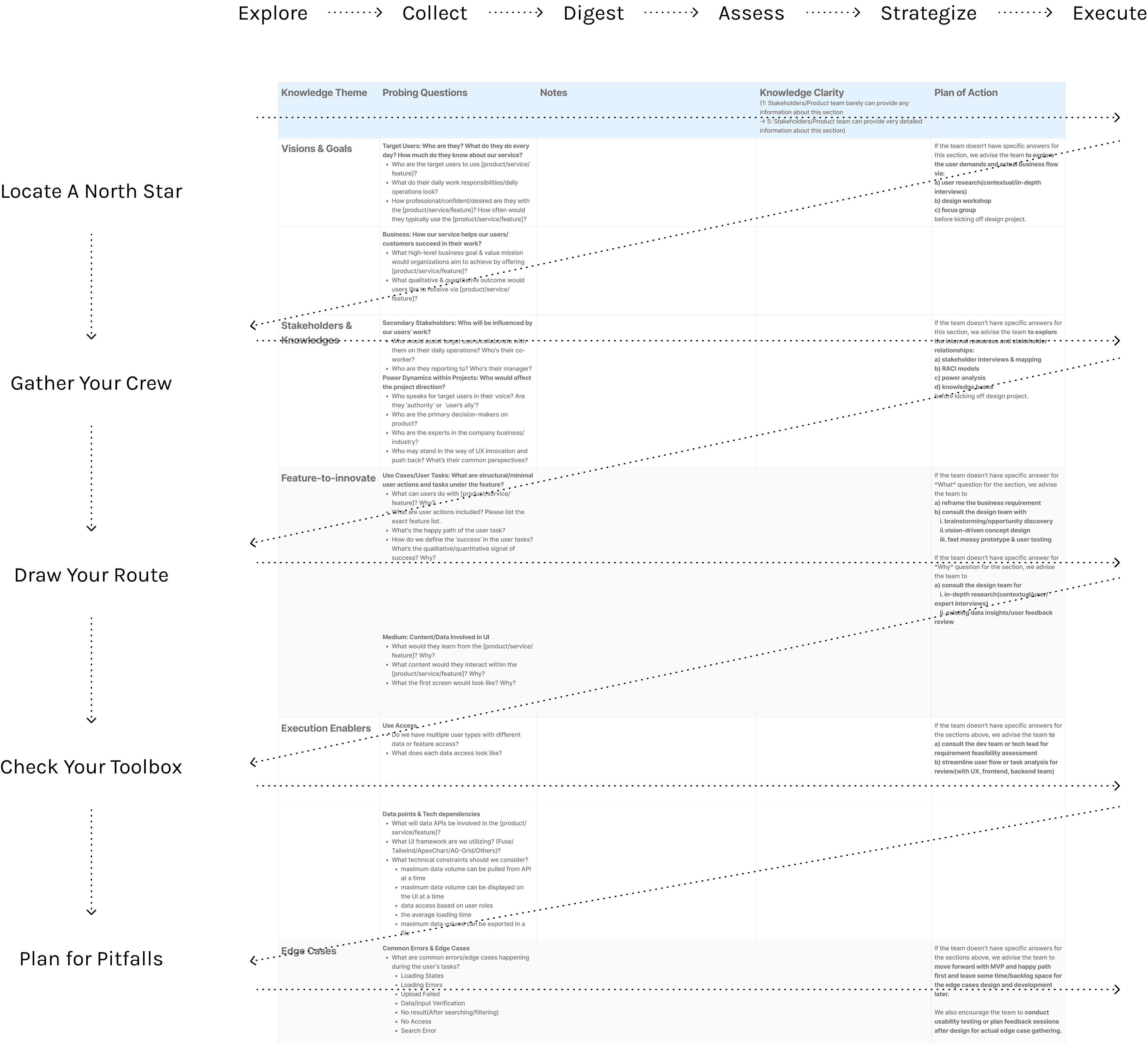 In addition to these proven tracks, this tool has also been widely beloved by non-designer colleagues—including product managers, technical leads, and other leadership roles—for its thoughtful consideration of resource allocation, stakeholder management, and knowledge management. Self-guided by this tool, three projects have been completed by non-designer team independently without design consultancy. As a result, it has evolved into another form of application: implementation through workshops and facilitations, in which design consultants play a supporting role rather than acting as “lone wolves.”